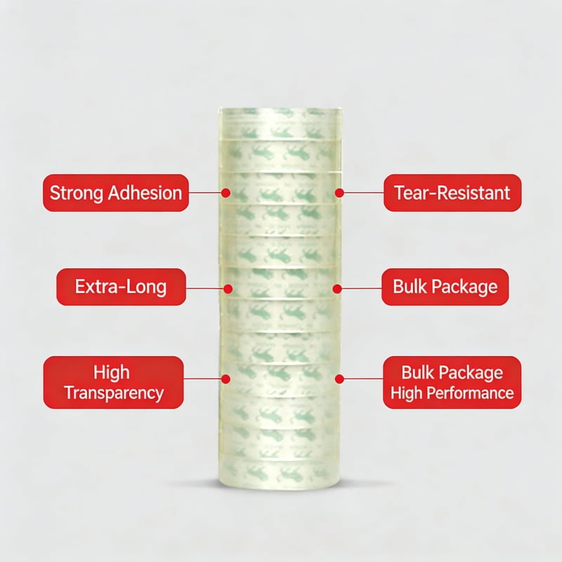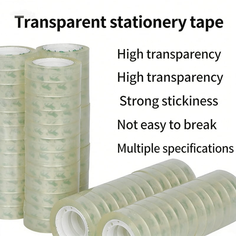 Stationery tape is a type of tape specifically designed for office, study, and household use. The base material is mostly BOPP (polypropylene film), which has high transparency, and the adhesive is environmentally friendly and non-toxic. Stationery tape has moderate adhesion, is easy to tear and use, and is not easily broken. It is widely used for light-weight pasting scenarios such as pasting paper, wrapping gifts, and repairing books, making it an essential tool for daily office work and student studies.