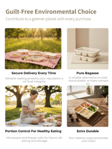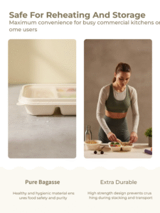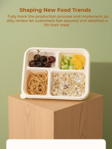 Fast food boxes are food-grade packaging containers used for takeout and dine-in packaging. They are made of environmentally friendly plastics such as PP, PET, and PS, or pulp materials. The boxes are sturdy and durable, have good sealing properties, and excellent heat preservation performance. They can effectively hold various hot and cold foods, widely meeting the diverse catering needs of fast food, bento boxes, cooked food, and pastries. Main features: Leak-proof and airtight: The lid fits tightly to the box body, effectively preventing spills and facilitating packaging and carrying. Heat and cold resistant: Resistant to high-temperature microwave heating and refrigeration, suitable for storing various foods. Multiple sizes and compartments: Commonly available in single, double, triple, and multi-compartment options, allowing for proper separation of rice and dishes to meet different dining needs. High strength and easy stacking: The sturdy and pressure-resistant box body facilitates transportation and storage, improving meal preparation efficiency. Environmentally friendly and recyclable: Made with carefully selected environmentally friendly materials; some products are biodegradable, promoting a green and healthy lifestyle and meeting market trends towards environmental protection. Customization available: Size, compartments, colors, and company logo printing can be customized to meet customer needs.